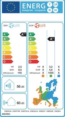 Postoji 7 stupnjeva energetske učinkovitosti, od A do G. Najučinkovitiji je stupanj “A”, a najmanje učinkovit je stupanj “G”. Energetska učinkovitost predstavlja relaciju između utrošene električne energije i ostvarenog rashladnog/toplinskog učina. Naziva se još i faktor iskoristivosti. Što je SEER/SCOP veći, to dobivate više rashladne energije za 1 kWh uložene električne energije.